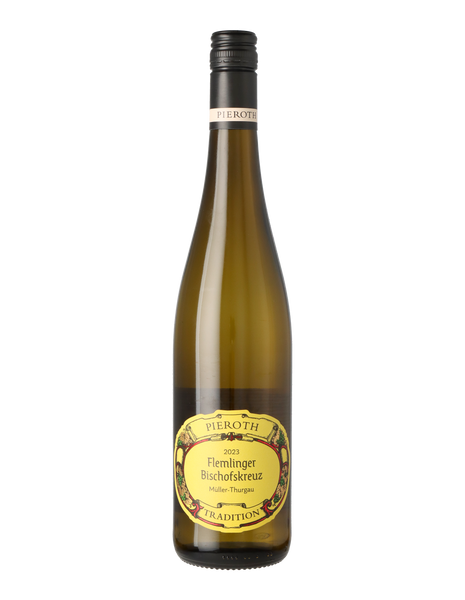 The 2023 Flemlinger Bischofskreuz is a stellar example of a dry white wine hailing from the sun-kissed vineyards of Pfalz, Germany. Crafted from the Müller-Thurgau grape, a cross between Riesling and Madeleine Royale, this variety is known for its early ripening and ability to produce wines with floral aromas and a refreshing, approachable character.